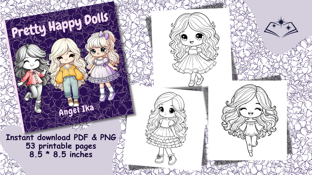 ✨ Bring joy to your day with Pretty Happy Dolls! 53 cheerful and easy-to-color pages, perfect for a relaxing and happy creative break.